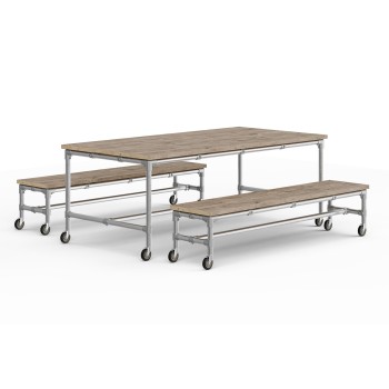 Die Konstruktion wird als Bausatz mit Rohren und KLEMP-Verbindungen geliefert, was eine schnelle und einfache Montage mit einem Inbusschlüssel ermöglicht. So behalten Sie die volle Kontrolle über die Positionierung des Tisches und können kleine Anpassungen auf unebenem Untergrund vornehmen.
