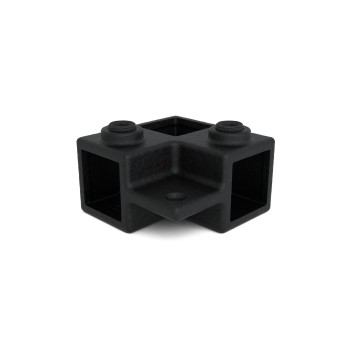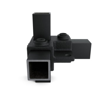 Auf Lager - Versand in 2–9 WerktagenEckstück durchlaufender Ständer mit lasche- 25 mm. Eckstück-Verbinder (90°). Mit der Option, ein vertikales Rohr rechtwinklig zu verbinden.