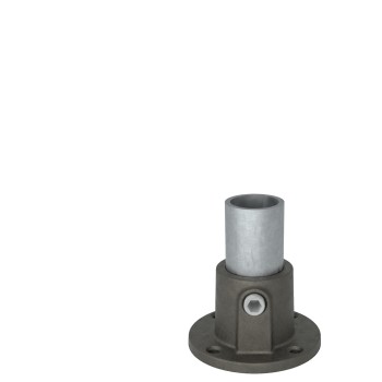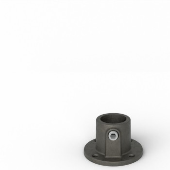 Fußplatte, rund. Dieser Rohrverbinder wird an Konstruktionen eingesetzt, bei denen eine Positionsfixierung erforderlich ist. Nicht als Basisflansch zur Abstützung von Schutzgeländern oder ähnlichen Systemen verwenden.