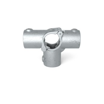 Auf Lager - Versand in 2–9 WerktagenOffenes (klappbares) T-Stück mit Seitenausgang. Der gleiche Rohrverbinder wie Typ 24. Aber dieser Rohrverbinder kann mithilfe eines klappbaren Teils auf dem vertikalen Rohrverbinder an einer bestehenden Konstruktion befestigt werden.