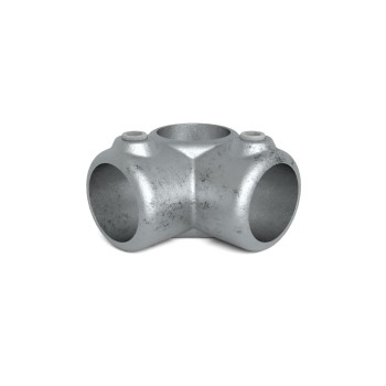 Auf Lager - Versand in 2–9 WerktagenRohrverbinder, Eckstück, durchgehend, Typ 20. Dieser Rohrverbinder ist vergleichbar oder wird oft zusammen verwendet mit dem Rohrverbinder Typ 18, wobei letzterer Verbinder dann an der äußersten Ecke als Abschluss eingesetzt wird. Das Eckrohr läuft beim Eckstück durchgehend an einem Stück durch. An das Eckrohr können wiederrum zwei Rohre im rechten Winkel angeschlossen werden.