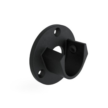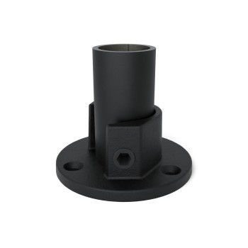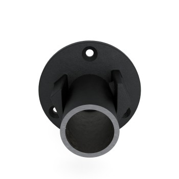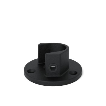 In stock - shipping in 2–9 business daysRound base plate with inlay (SET). Excellently suitable as rod holder. Supplied as a set (left and right version). After you have placed the round foot plates, you can simply insert the tube. Also suitable for temporary removal of a passageway, where the tube can be removed easily and quickly. Another big plus of the black coating is, that the color gets into the material really deeply, which prevents the connectors from corroding too quickly. The paintwork is not resistant to UV radiation and is therefore not suitable for outdoor use. The tubefittings are equipped with black colored stainless steel adjusting screws with cutting edge.