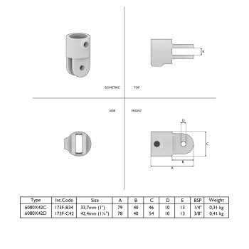 • - 42.4/48.3 and 60.3 - G 3/8" x 12.7 mm 19 BSP