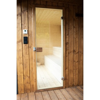 Practical accessories such as a thermometer, hygrometer and hourglass for timing your sauna sessions are also available. A stone oven is also included. This is complemented by a built-in music player and LED mood lighting with remote control.