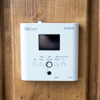 Practical accessories such as a thermometer, hygrometer and hourglass for timing your sauna sessions are also available. A stone oven is also included. This is complemented by a built-in music player and LED mood lighting with remote control.