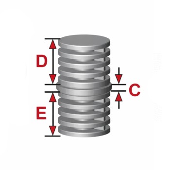Dimensiones: C = 5 mm; D = 48 mm; E = 48 mm