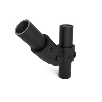 Los acoplamientos de tuberías se fijan con un tornillo Allen. De este modo, se puede realizar perfectamente cualquier construcción deseada, ya sea compleja o más bien sencilla - las posibilidades son casi ilimitadas, ya que la elección de diferentes tipos de conexión de tuberías significa que casi todo es posible, tanto si se trabaja con tuberías de aluminio como de acero galvanizado, siempre que se mantenga el diámetro correcto.
