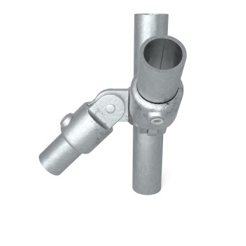Los acoplamientos de tuberías se fijan con un tornillo Allen. De este modo, se puede realizar perfectamente cualquier construcción deseada, ya sea compleja o más bien sencilla - las posibilidades son casi ilimitadas, ya que la elección de diferentes tipos de conexión de tuberías significa que casi todo es posible, tanto si se trabaja con tuberías de aluminio como de acero galvanizado, siempre que se mantenga el diámetro correcto.