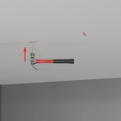 Coloca los casquillos en los agujeros perforados y golpéalos suavemente con un martillo hasta que queden a ras de la superficie de las lamas.