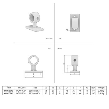 En stock - expédition sous 2 à 9 jours ouvrablesRaccord de main courante pour tuyaux, type 34. Pour fixer des mains courantes et des structures à un mur. Ce raccord de tuyau est également fréquemment utilisé pour monter des cadres de bannières publicitaires sur un mur de maison ou une façade. Dans certains cas, cette pince est également souvent utilisée pour visser, par exemple, des planches en bois sur une structure d’étagères en tuyaux.