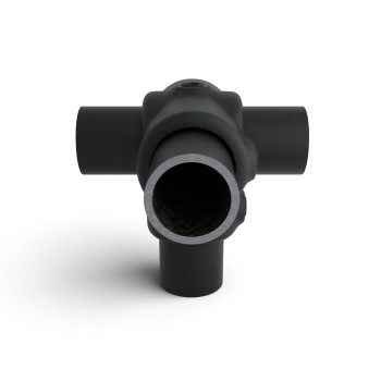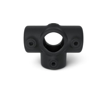 Té de sortie latérale. Pince 3 directions permettant de fixer des montants avec 3 tubes horizontaux perpendiculaires entre eux. Le tube vertical passe à travers la pince.