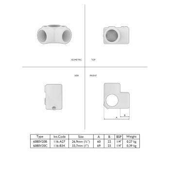 I raccordi mostrati nelle foto sono descritti con le dimensioni. Ogni connettore ha un codice di riferimento semplice e unico, chiamato tipo, per distinguerlo da tutti gli altri connettori. Il codice completo è composto dal tipo di connettore e dalla dimensione, che indica la dimensione del tubo o dei tubi corrispondenti che possono essere collegati.