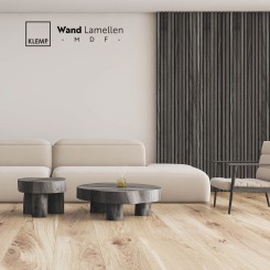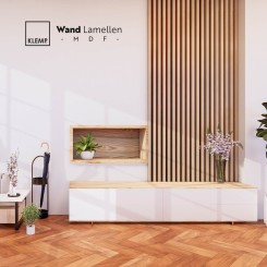 Offriamo due tipi di listelli, in MDF impiallacciato in laminato o in MDF impiallacciato in rovere naturale.