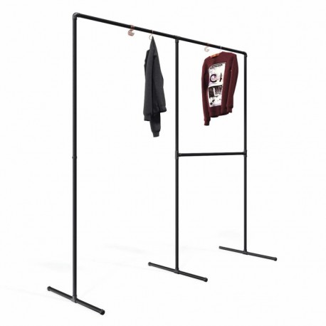 Realizzato in tubi d'acciaio, l’appendiabiti KLEMP e gli angolari in ghisa malleabile garantiscono un'eccezionale stabilità all'intera struttura.