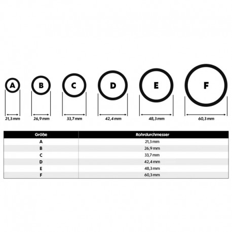 Nella nostra offerta troverete connettori rotondi con diametri di 21,3 mm, 26,9 mm, 33,7 mm, 42,4 mm, 48,3 mm, 60,3 mm.