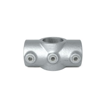 Op voorraad - verzending binnen 2–9 werkdagenKruisstuk in 1 vlak. 90° verbindingsklem tussen de middenreling en de relingstijlen.