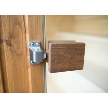 Wszystkie elementy konstrukcji jest precyzyjnie wykonane z drewna i idealnie do siebie pasują. Dzięki temu nawet niewielka przestrzeń może zamienić się w komfortową strefę relaksu z sauną dla rodziny lub przyjaciół.