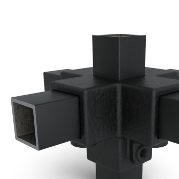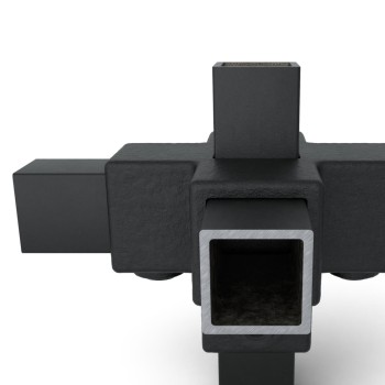 W magazynie - wysyłka 2-9 dni roboczychElement poprzeczny do rury nośnej. 4-kierunkowy łącznik do mocowania podpór z 4 poziomymi rurkami, które są do siebie prostopadłe. Rurka nośna przechodzi przez złącze.